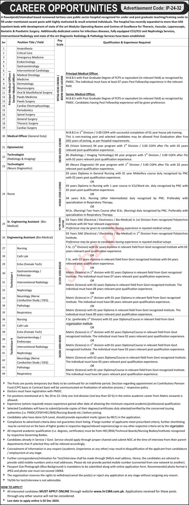 Public Sector Hospital invites applications for job positions advertised in daily Nation dated 18 November 2024 for following vacancies in Islamabad, islamabad Islamabad Pakistan.