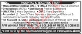 Vacancies in RFM Wonhar Trust Hospital & College of Medical Science Advertisement June 2024