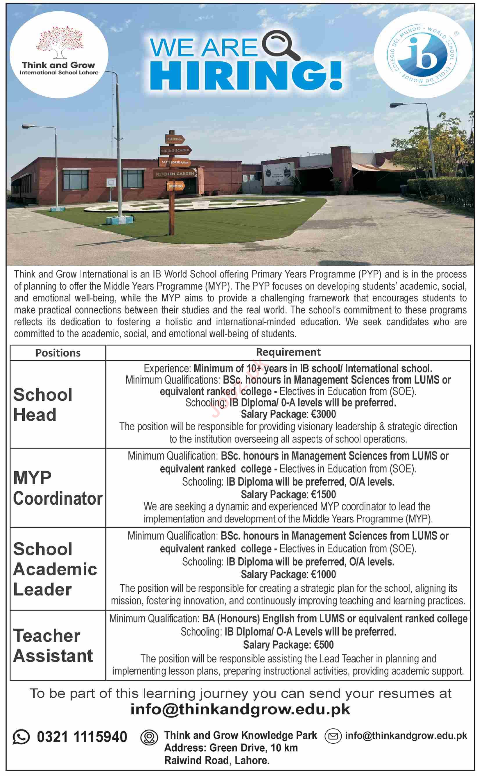 Latest Think and Grow Education System Management Posts Lahore 2025