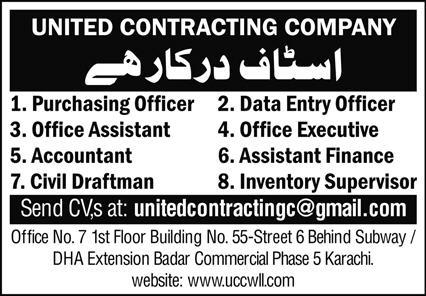 United Contracting Company is looking for candidates for following posts as per job advertisement published in daily Express Newspaper of October 27, 2024 for location Karachi, karachi Sindh Pakistan: