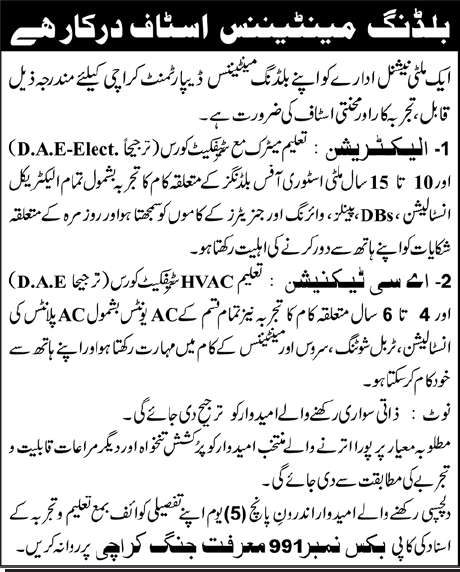 Apply as per details in job advertisement. Login to view further details of how to apply via https://www.jobz.pk online.