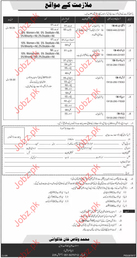 Apply as per details in job advertisement. Login to view further details of how to apply via https://www.jobz.pk online.