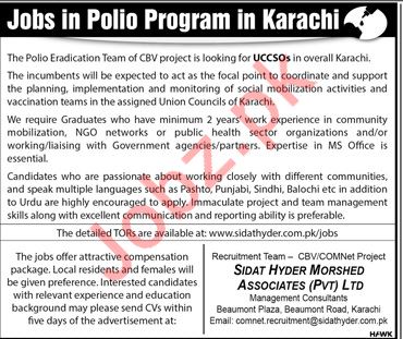 Latest Sidat Hyder Morshed Associates Management Posts Karachi 2025