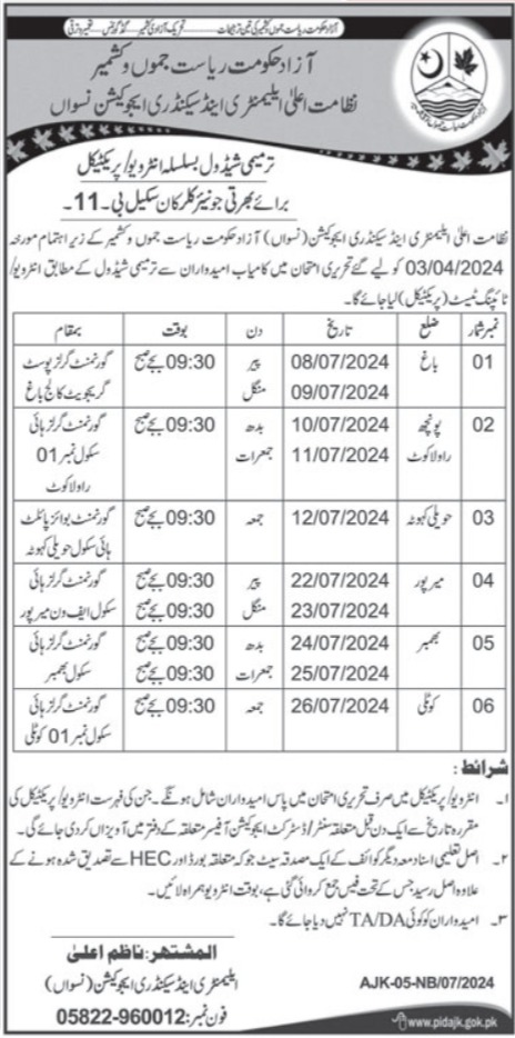 Elementary and Secondary Education Department ESED is looking for candidates for following posts as per job advertisement published in daily Ausaf Newspaper of July 6, 2024 for location Muzaffarabad, haveli, kotli, mirpur, muzaffarabad, poonch, bhimber, bagh and rawalakot AJK Pakistan: