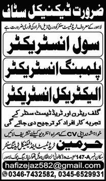 Harmain Trade Test & Technical Training Center invites applications for job positions advertised in daily Express dated 24 September 2024 for following vacancies in Lahore, lahore Punjab Pakistan.