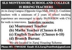 Latest SLS Montessori School and College Management Posts Islamabad 2025