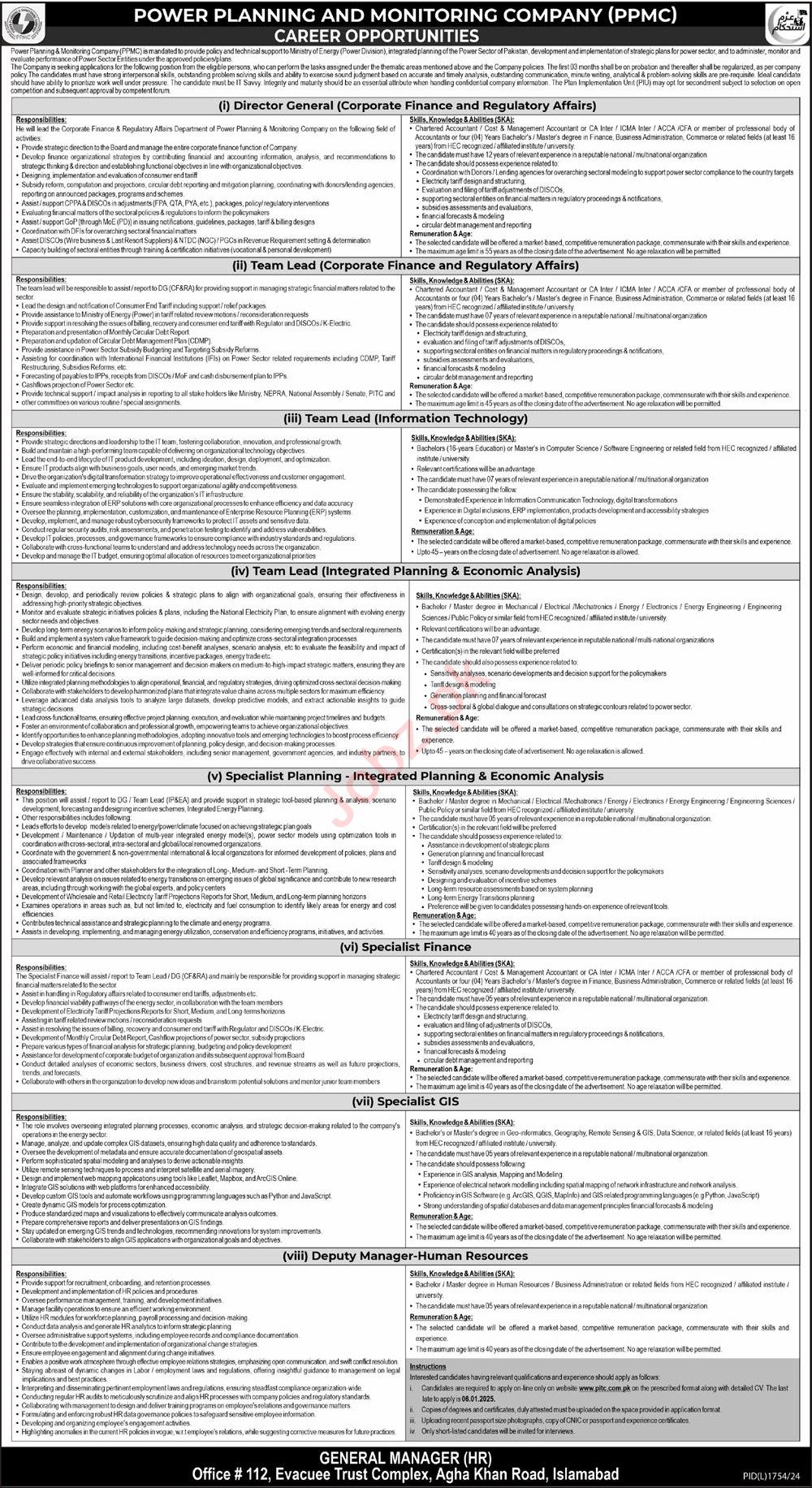 Vacancies in Power Planning and Monitoring Company Advertisement December 2024