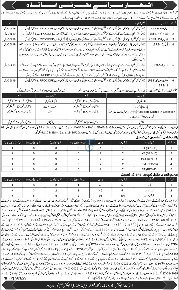 Elementary and Secondary Education Department ESED latest Government Education jobs and others can be applied till 17 March 2025 or as per closing date in newspaper ad. Read complete ad online via ETEA to know how to apply on latest Elementary and Secondary Education Department ESED job opportunities.