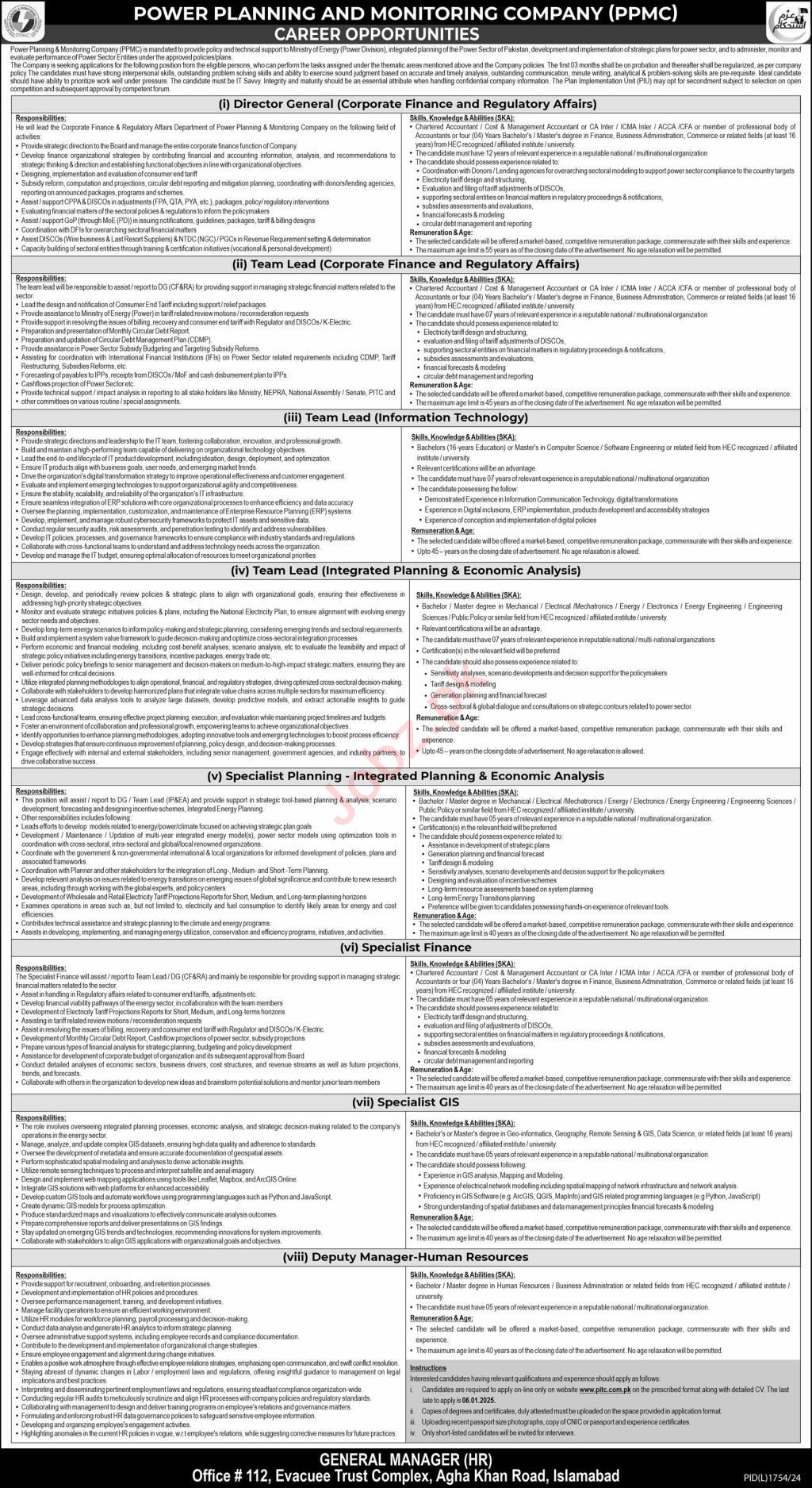 Power Planning and Monitoring Company is looking for candidates for following posts as per job advertisement published in daily Express Newspaper of December 22, 2024 for location Islamabad, islamabad Islamabad Pakistan: