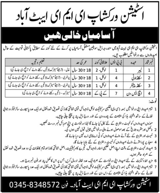 Jobs Positions At Station Workshop EME Abbottabad