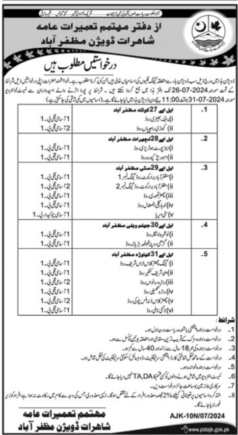Communication & Works Department is looking for candidates for following posts as per job advertisement published in daily Ausaf Newspaper of July 6, 2024 for location Muzaffarabad, muzaffarabad AJK Pakistan: