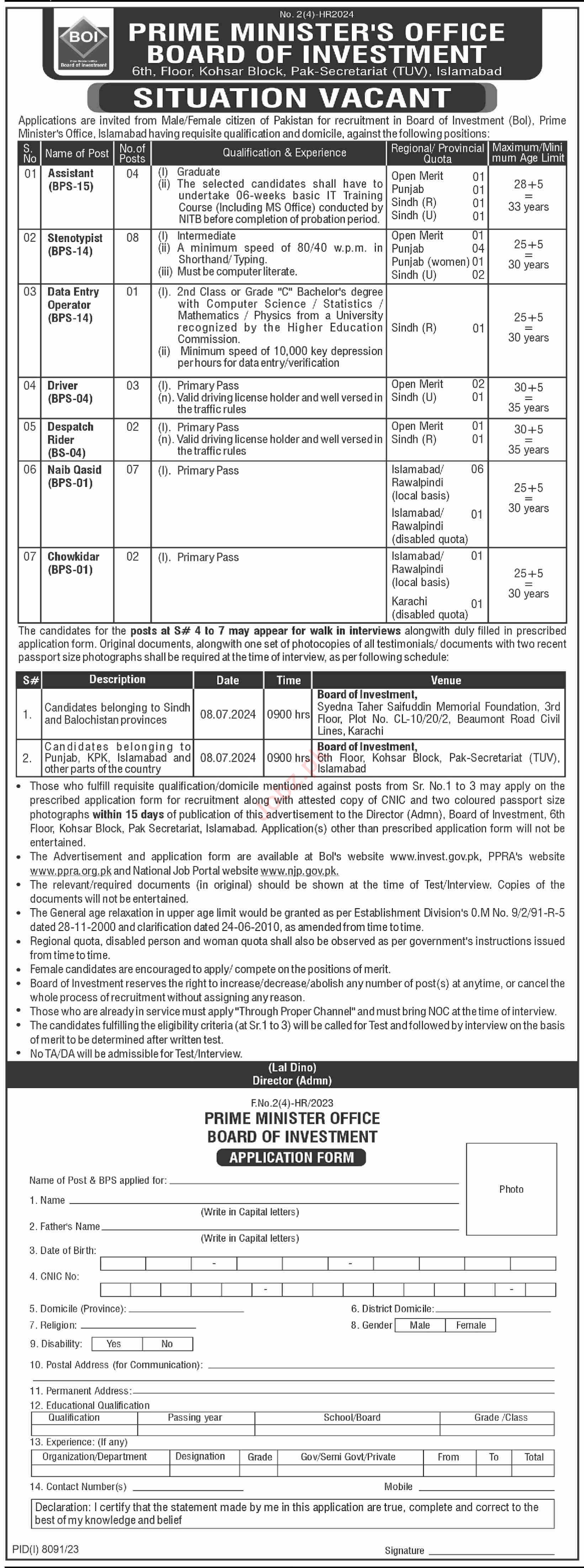 Board of Investment is looking for candidates for following posts as per job advertisement published in daily Dawn Newspaper of June 30, 2024 for location Islamabad, islamabad Islamabad Pakistan: