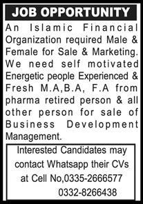 Islamic Financial Organization jobs advertisement dated about 29 May 2022 in daily Express Newspaper invites application for the vacant post of sales marketing staff in Quetta, quetta Balochistan Pakistan. Preferred Education is Intermediate, MA and BA etc.