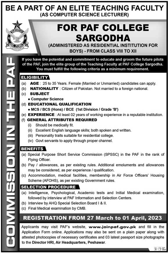 Join Pakistan Air Force As Computer Science Lectuer