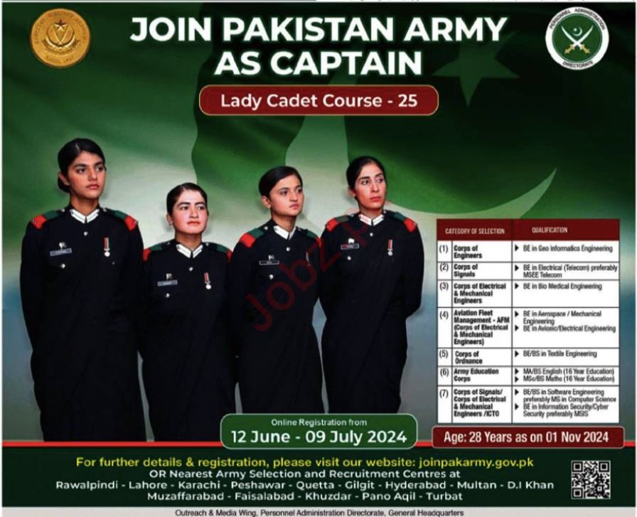 Join Pakistan Army As Captain Lady Cadet Course 25