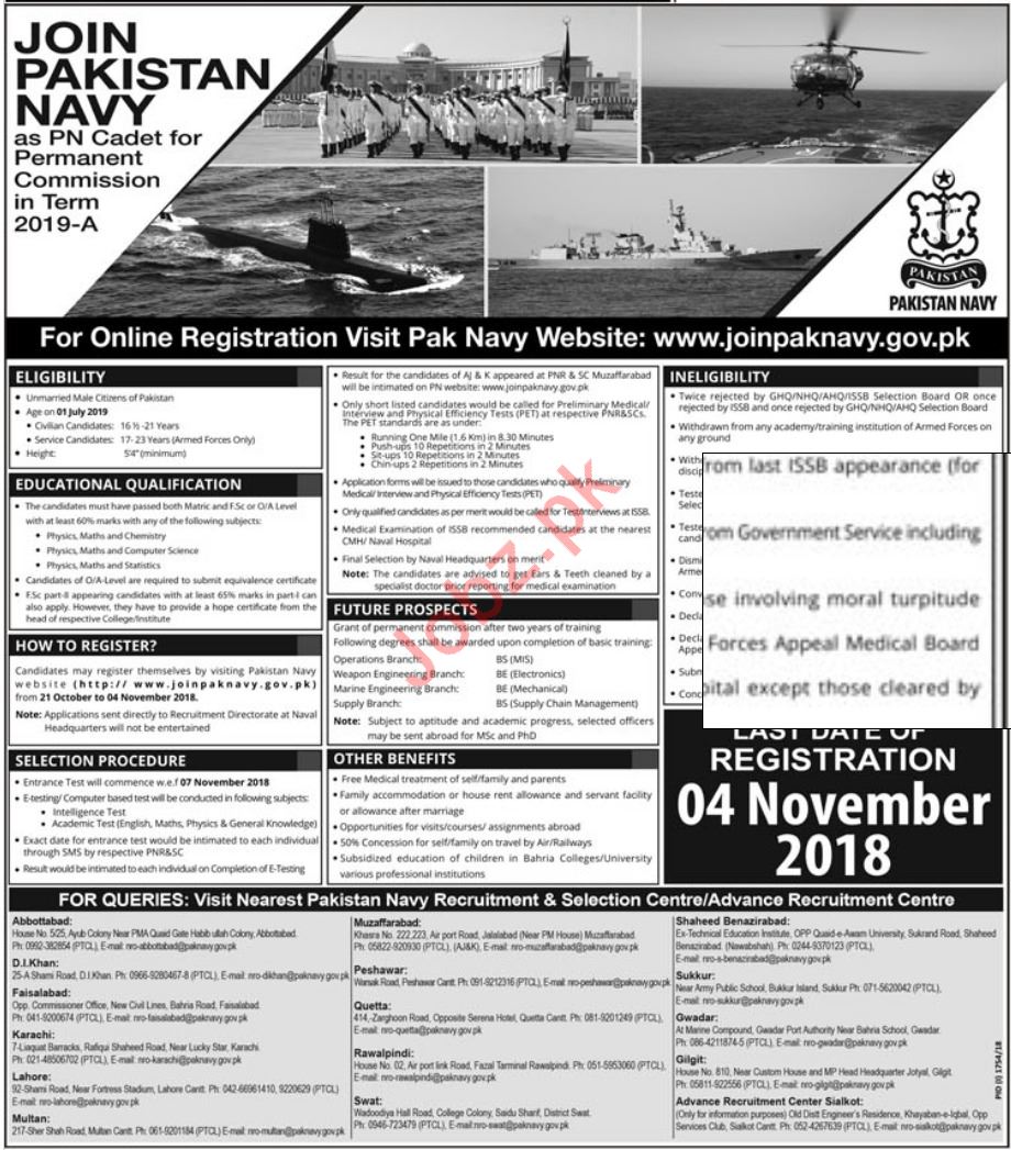 Join Pakistan Navy as PN Cadet For Permanent Commission 2019