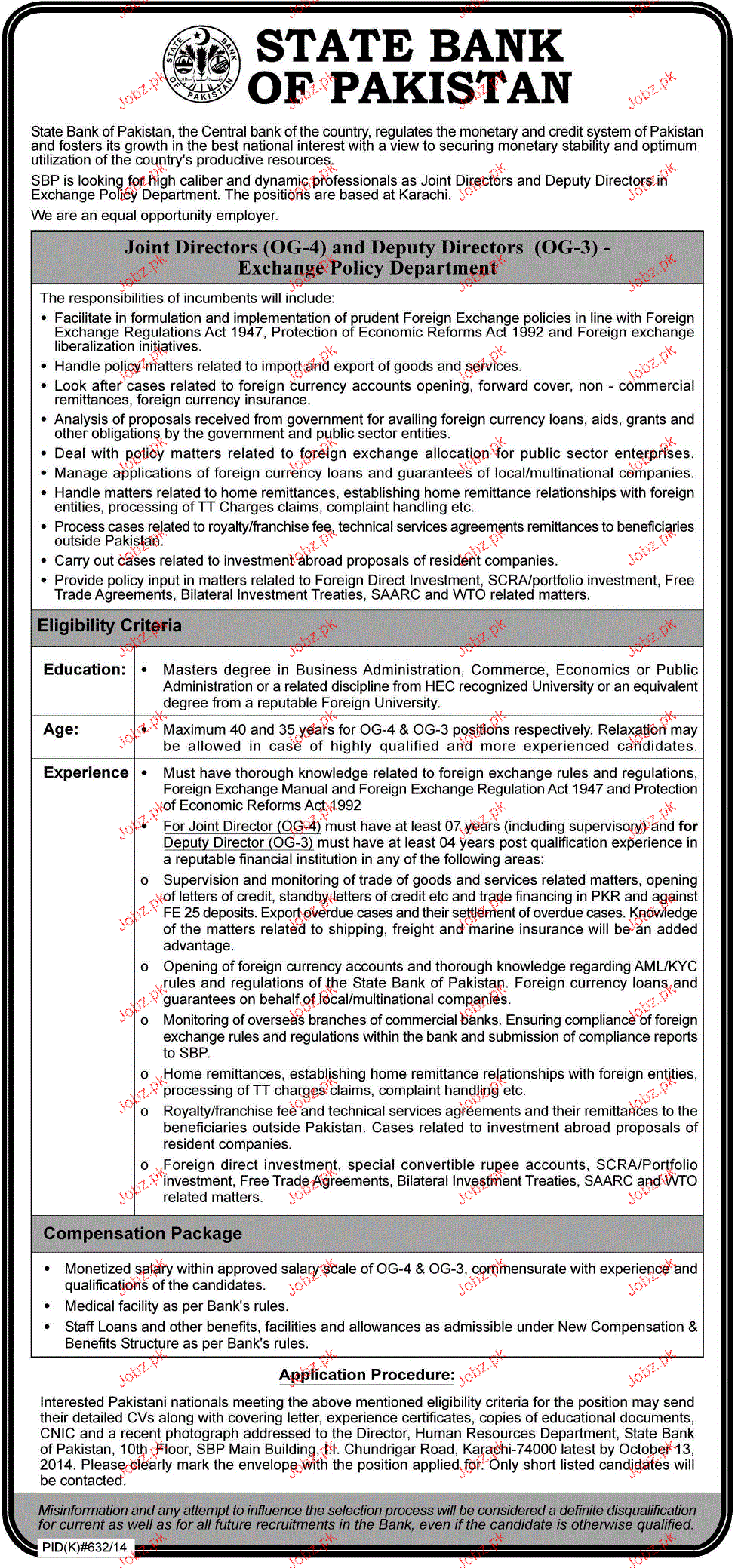 Apply as per details in job advertisement. Login to view further details of how to apply via https://www.jobz.pk online.