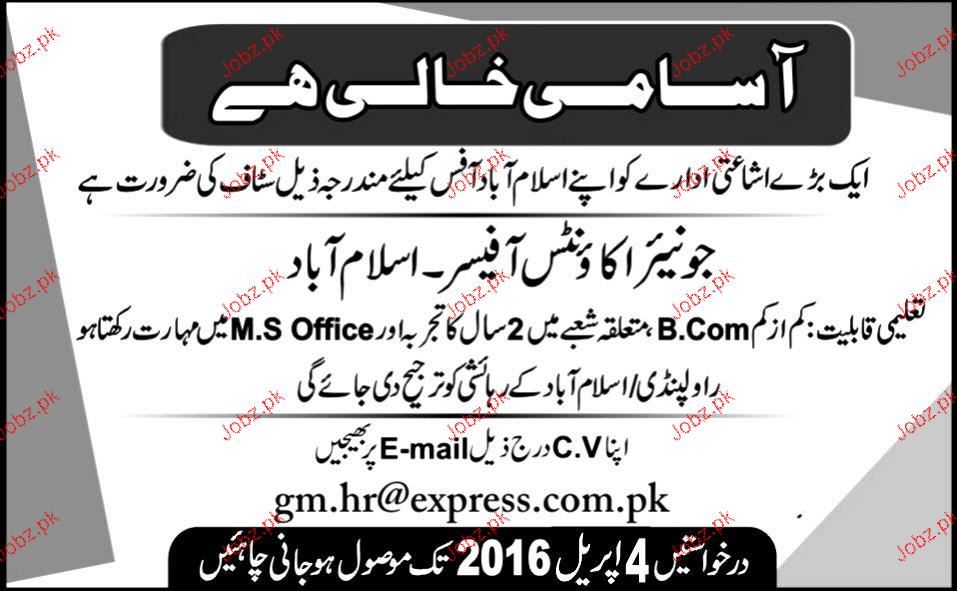 Apply as per details in job advertisement. Login to view further details of how to apply via https://www.jobz.pk online.