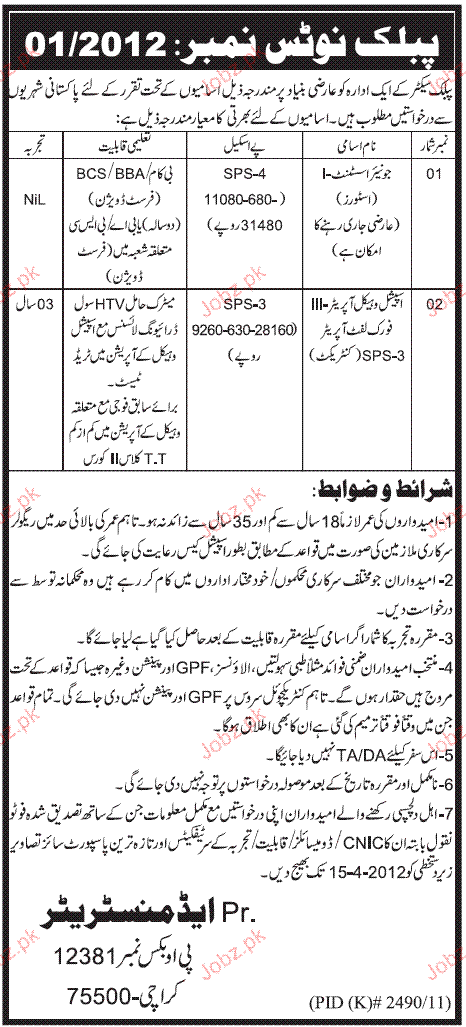 Junior Assistant-I And Special Vehicle Operators Wanted