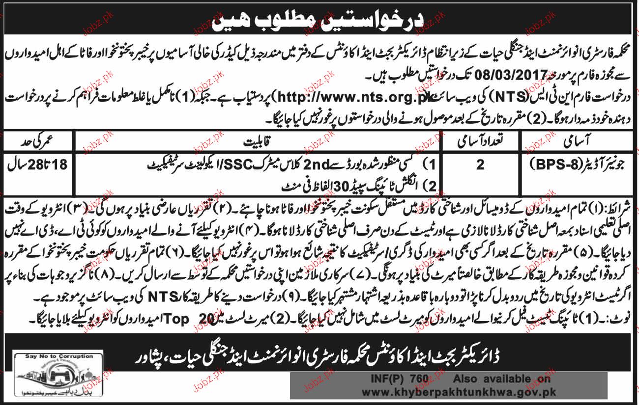 Latest Government Admin Clerical Posts Peshawar 2025
