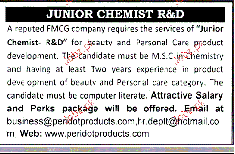 Junior Chemists Job Opportunity