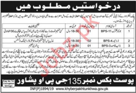 Junior Clerk, Drivers & Naib Qasid Jobs 2019 In Peshawar KPK