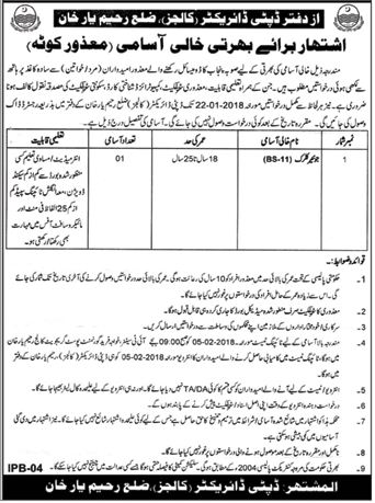 Latest Deputy Director of Education Colleges Admin Clerical Posts Rahim Yar Khan 2025