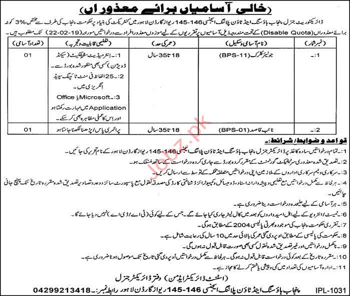 Vacancies in Punjab Housing & Town Planning Agency Advertisement February 2019