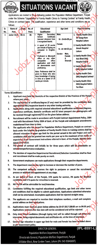 Latest Government Department Admin Clerical Posts Lahore 2025