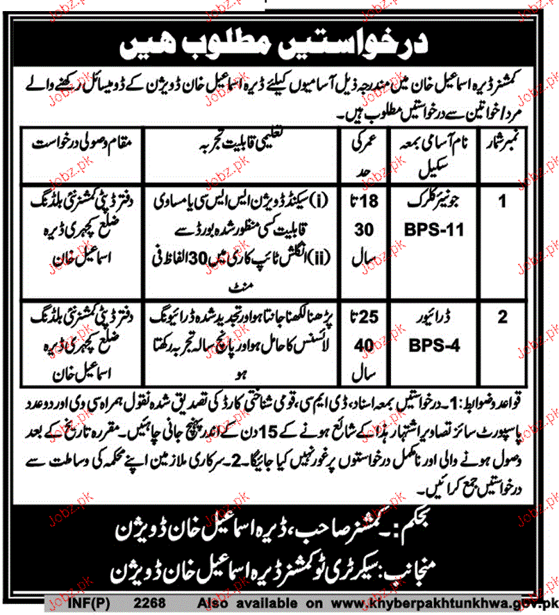 Latest District Government Admin Clerical Posts Dera Ismail Khan 2025