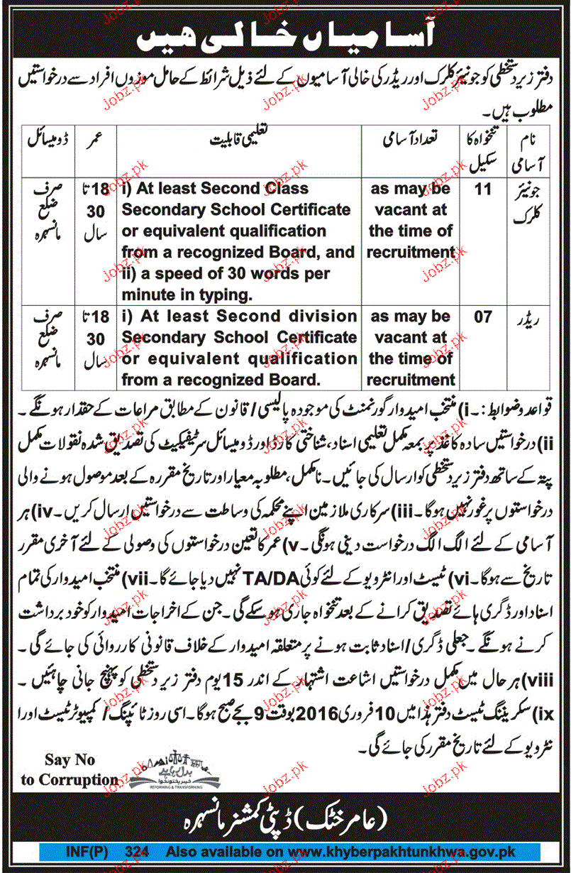 Latest District Government Admin Clerical Posts Nowshera 2025