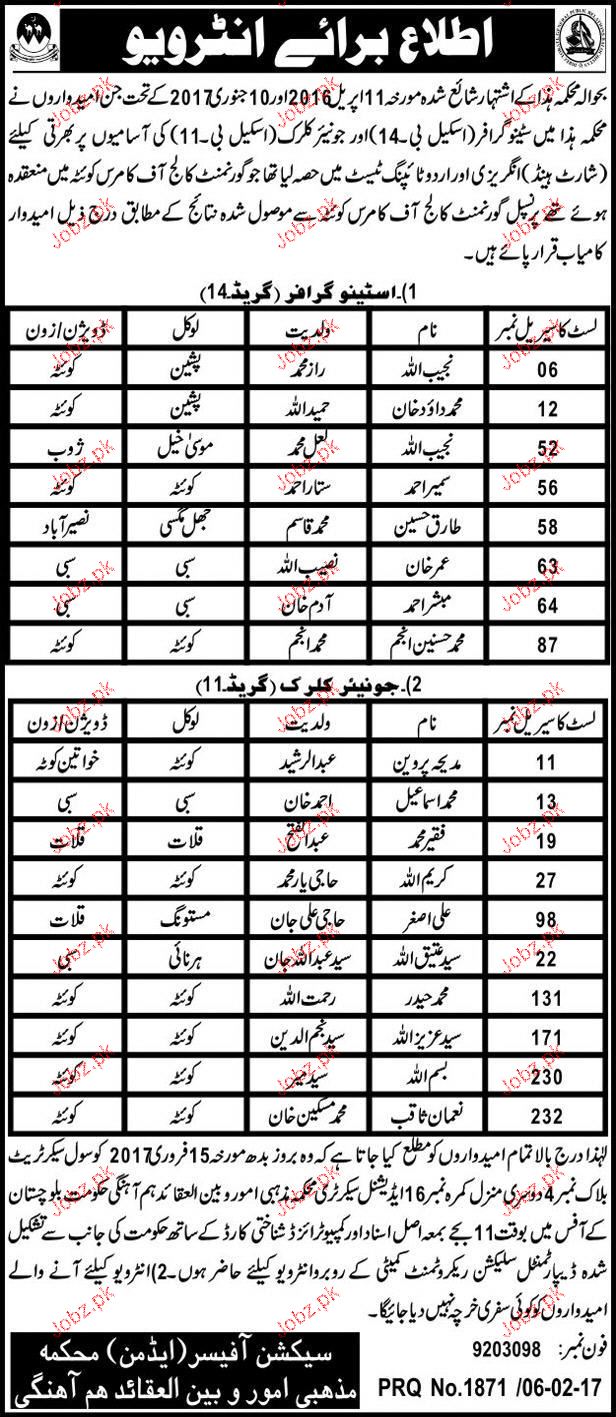 Latest Government Department Admin Clerical Posts Quetta 2025