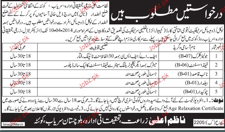 Latest Government Admin Clerical Posts Quetta 2025