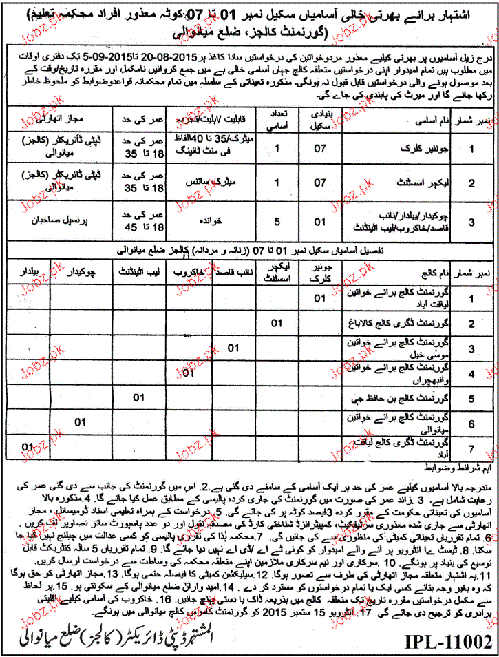 Latest Government Department Admin Clerical Posts Mianwali 2025