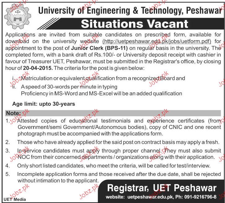 Apply as per details in job advertisement. Login to view further details of how to apply via https://www.jobz.pk online.