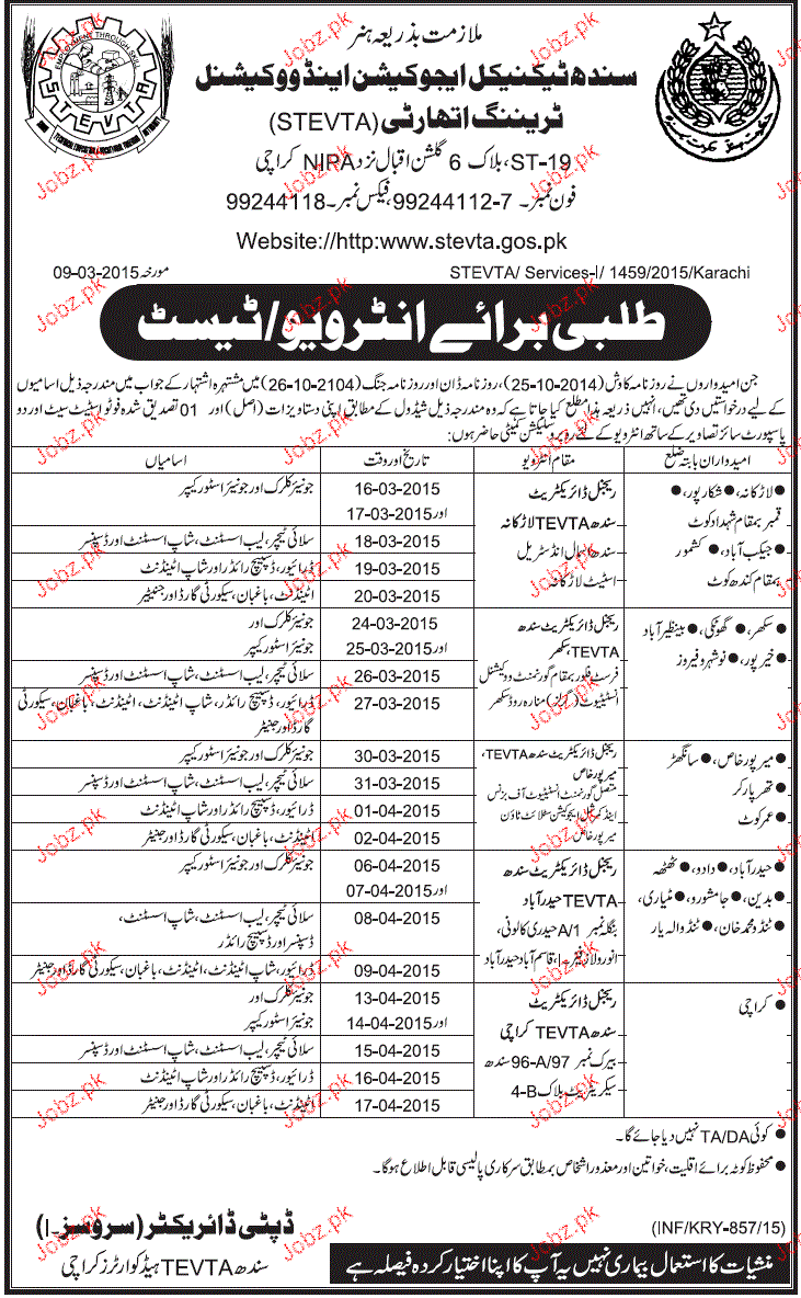 Apply as per details in job advertisement. Login to view further details of how to apply via https://www.jobz.pk online.