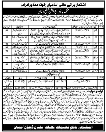 Latest Higher Education Department Admin Clerical Posts Multan 2025