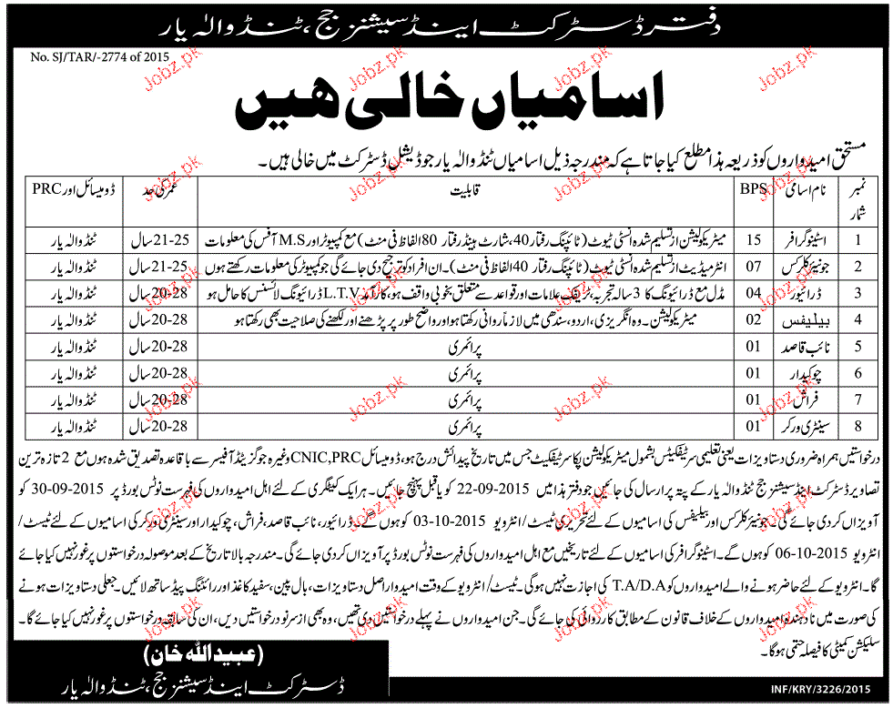 Latest Government Admin Clerical Posts Tando Allahyar 2025