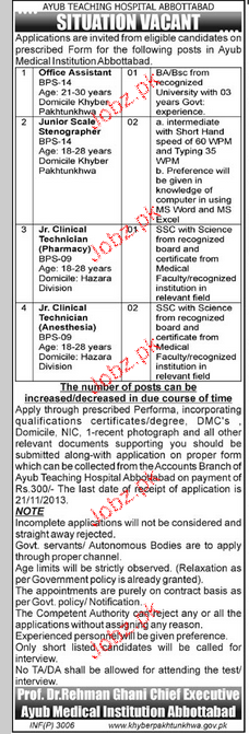 Junior Clinical Technicians Jobs in Ayub Teaching Hospital