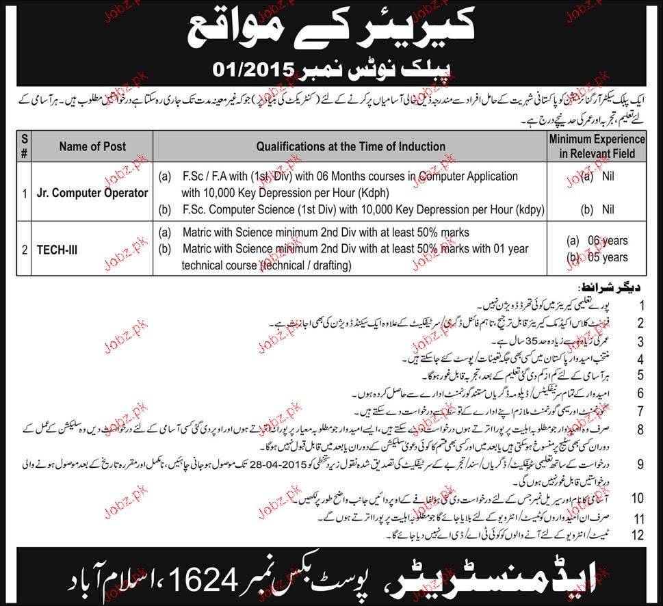 Apply as per details in job advertisement. Login to view further details of how to apply via https://www.jobz.pk online.