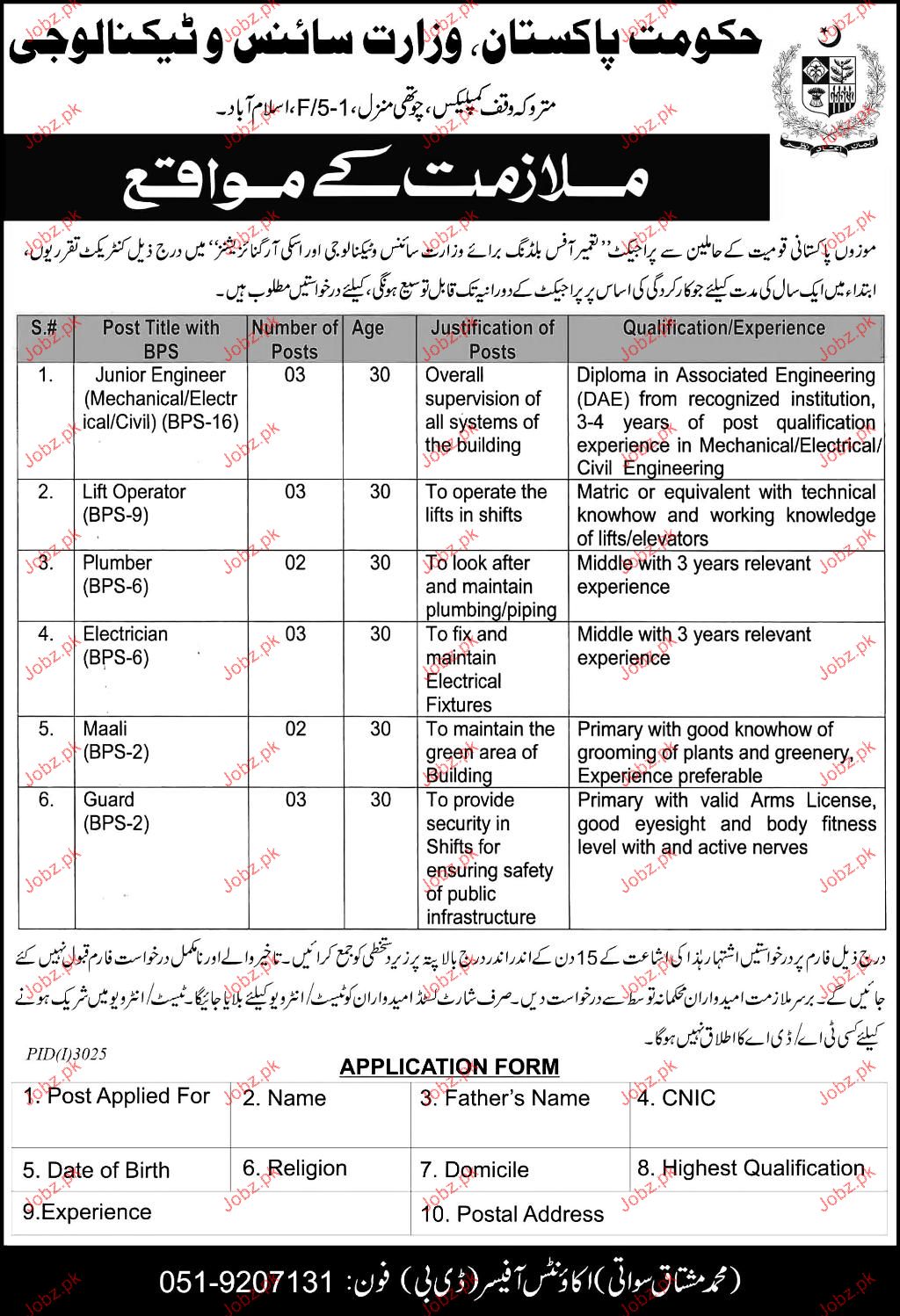 Latest Ministry of Science and Technology MOST Engineering Posts Islamabad 2025