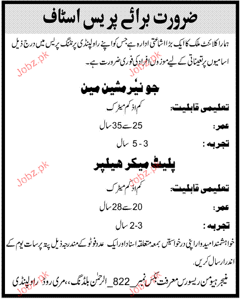 Junior Machine man and Plate Maker Helpers Job Opportunity