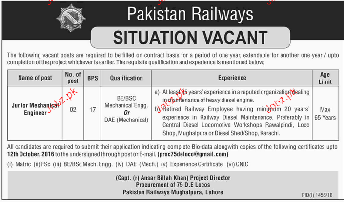 Latest Pakistan Railways Engineering Posts Lahore 2025