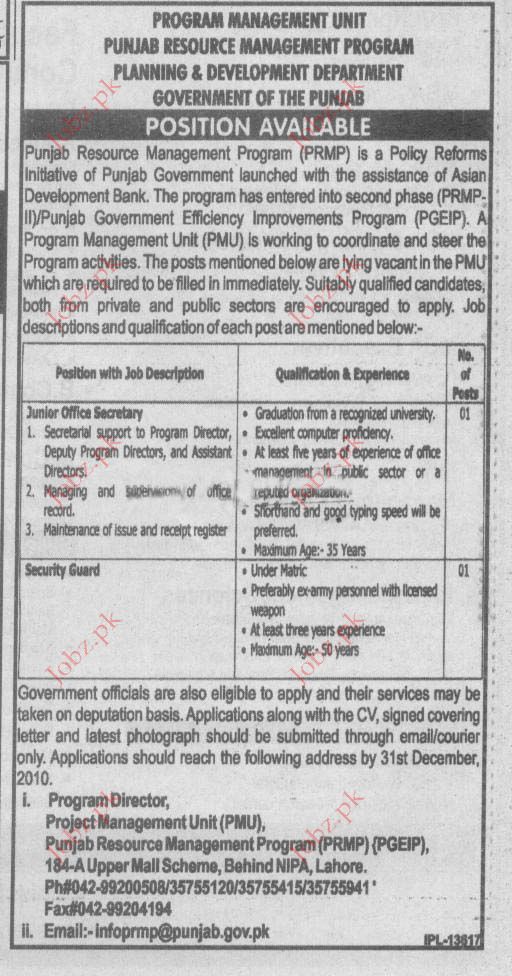 Latest Government Other Posts Lahore 2025