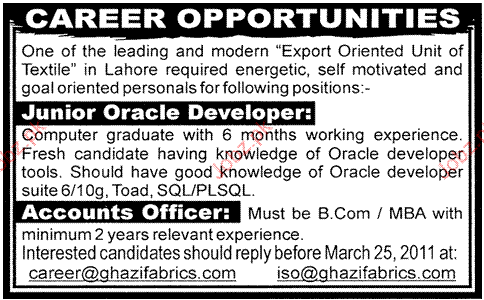 Apply as per details in job advertisement. Login to view further details of how to apply via https://www.jobz.pk online.