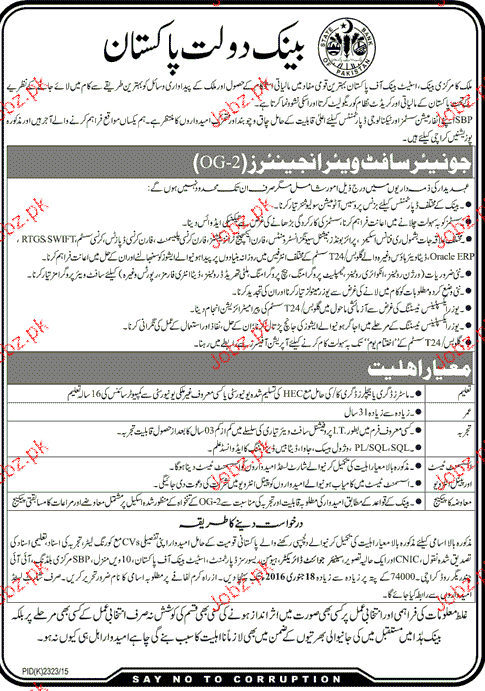 Junior Software Engineers are required in State Bank of Pakistan in Karachi.