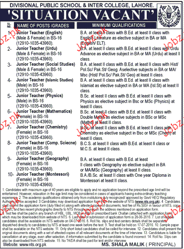 Junior Teachers Job In Divisional Public School & Inter Coll