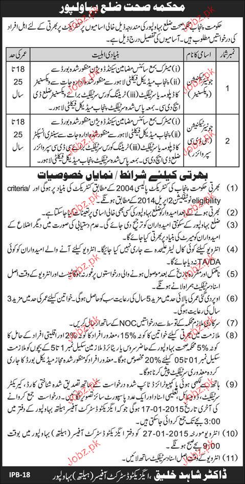 Junior Technicians Job In Health Department