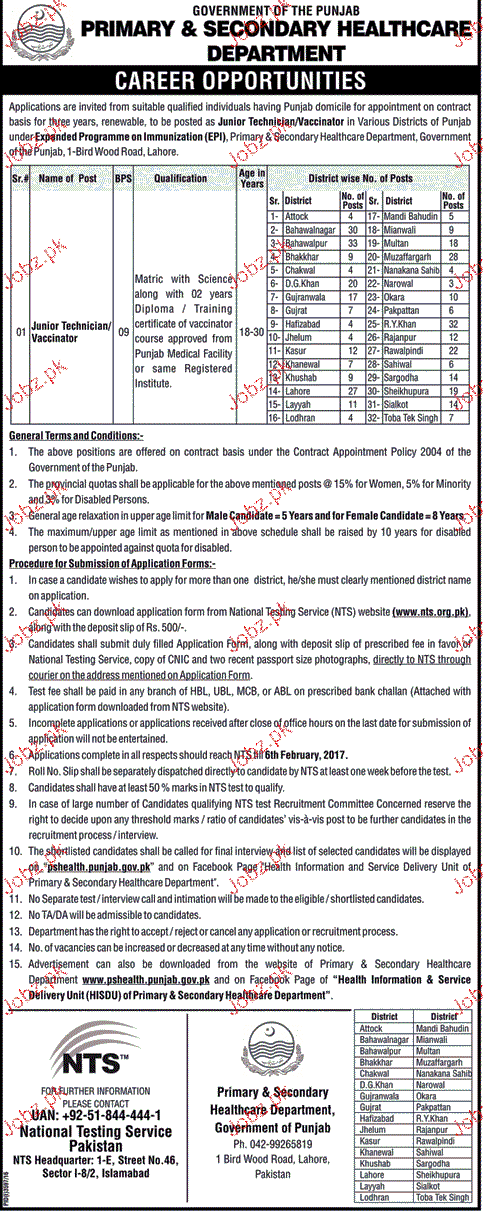 Apply as per details in job advertisement. Login to view further details of how to apply via https://www.jobz.pk online.