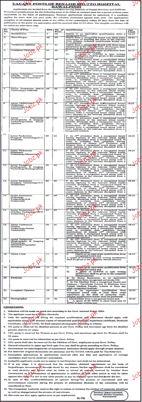 Apply as per details in job advertisement. Login to view further details of how to apply via https://www.jobz.pk online.